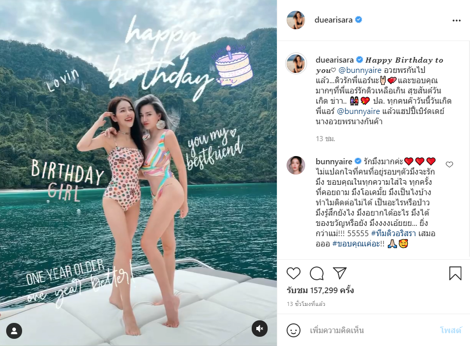 “𝑯𝒂𝒑𝒑𝒚 𝑩𝒊𝒓𝒕𝒉𝒅𝒂𝒚 𝒕𝒐 𝒚𝒐𝒖♡︎ @bunnyaire อวยพรกันไปแล้ว…ดิวรักพี่แอร์นะ และขอบคุณมากๆที่พี่แอร์รักดิวเหลือเกิน สุขสันต์วันเกิด ค่าา.. ปล. ทุกคนค๊าวันนี้วันเกิดพี่แอร์ @bunnyaire แล้วแฮปปี้เบิร์ดเดย์นางอวยพรนางกันค่า”