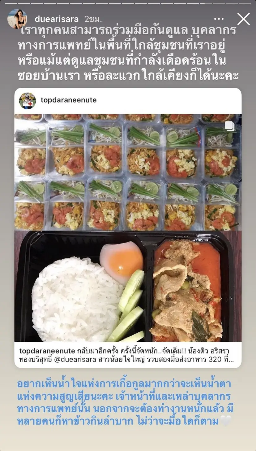 ดิว อริสรา ส่งนมฮอกไกโดถึงมือหมอ 120 ขวด เพื่อเป็นกำลังใจให้กับความเหนื่อยล้า