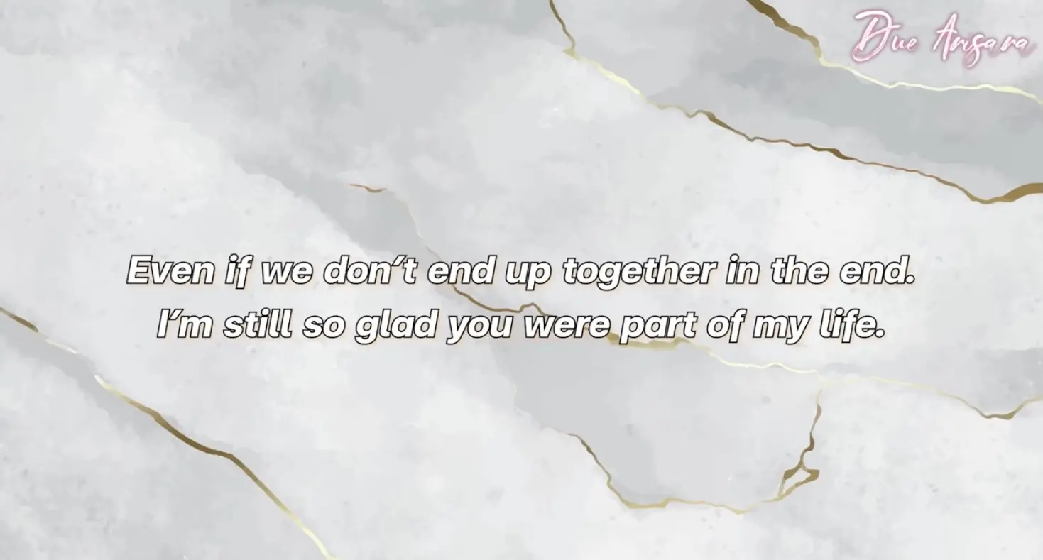 ซึ่งเป็นเป็นภาษาไทยได้ว่า “แม้ว่าเราจะไม่ได้อยู่ด้วยกันในตอนจบ แต่ฉันก็ยังดีใจที่คุณเคยเป็นส่วนหนึ่งในชีวิตของฉัน”