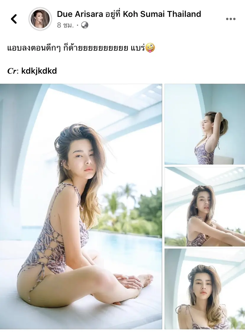 ล่าสุด ดิว มาโพสต์เซ็ตภาพสุดเซ็กซี่ด้วยชุดว่ายน้ำ ผ่านเฟซบุ๊ก พร้อมแคปชั่น ” แอบลงตอนดึกๆ ก็ด้ายยยยยยยยยย แบร่? “