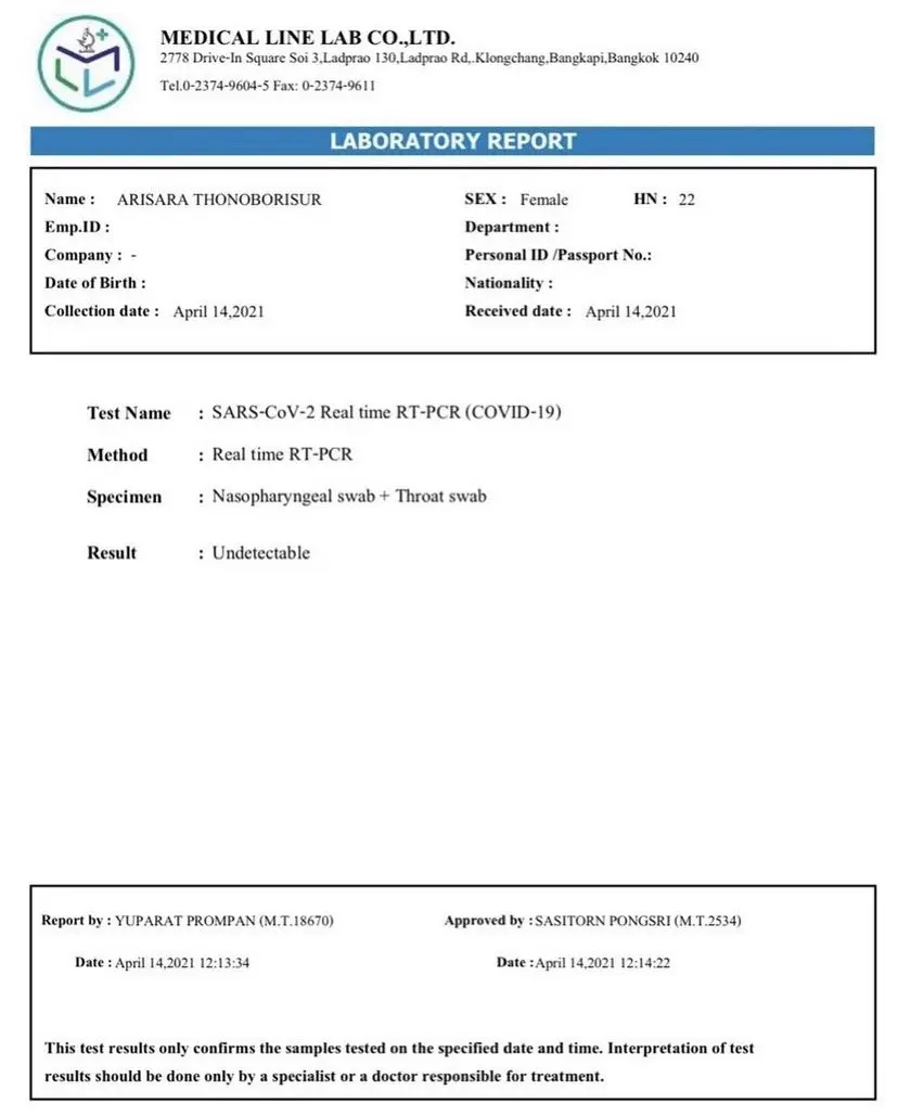 ก่อนหน้านี้ ดิว อริสรา ได้มีการตรวจหาเชื้อโควิด19 ซึ่งผลปรากฎว่าเป็นลบ คือไม่พบเชื้อ แต่เพื่อความรับผิดชอบต่อส่วนรวม เจ้าตัวจึงขอกักตัวให้ครบ 14 วัน และ จะตรวจหาเชื้ออีกครั้งเพื่อความสบายใจ