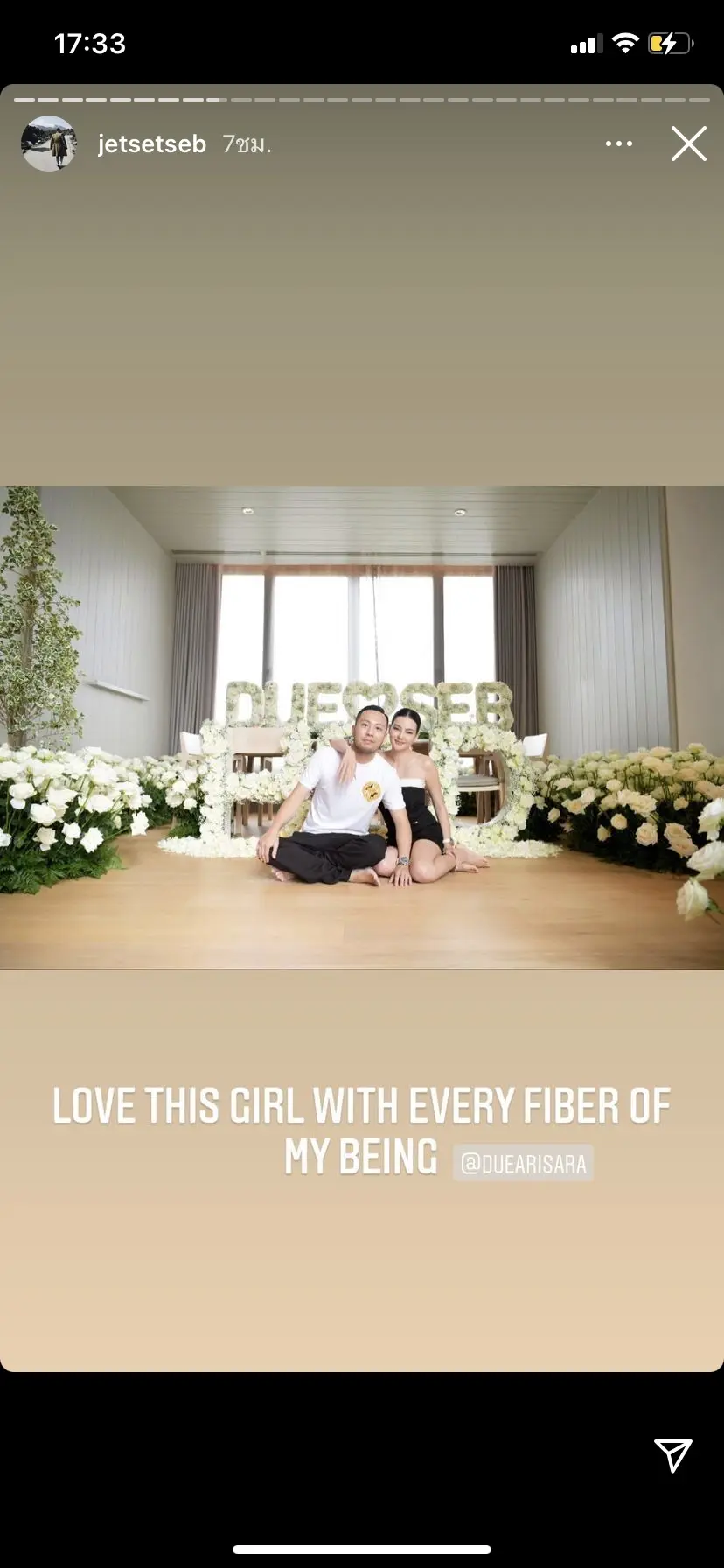 ล่าสุด วันเกิด เซบาสเตียนลี สาวดิวจึงจัดเซอร์ไพรส์สุดพิเศษด้วยการเนรมิตวิลล่าเป็นดอกกุหลาบสีขาว ข้อความว่า DUE (รูปหัวใจ) SEB HBD เรียกได้ว่าความหอมหวานนี่ไม่แพ้กุหลาบสีขาวที่แทนความรักอันบริสุทธิ์จริงๆ