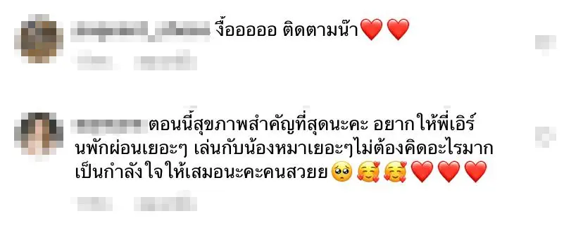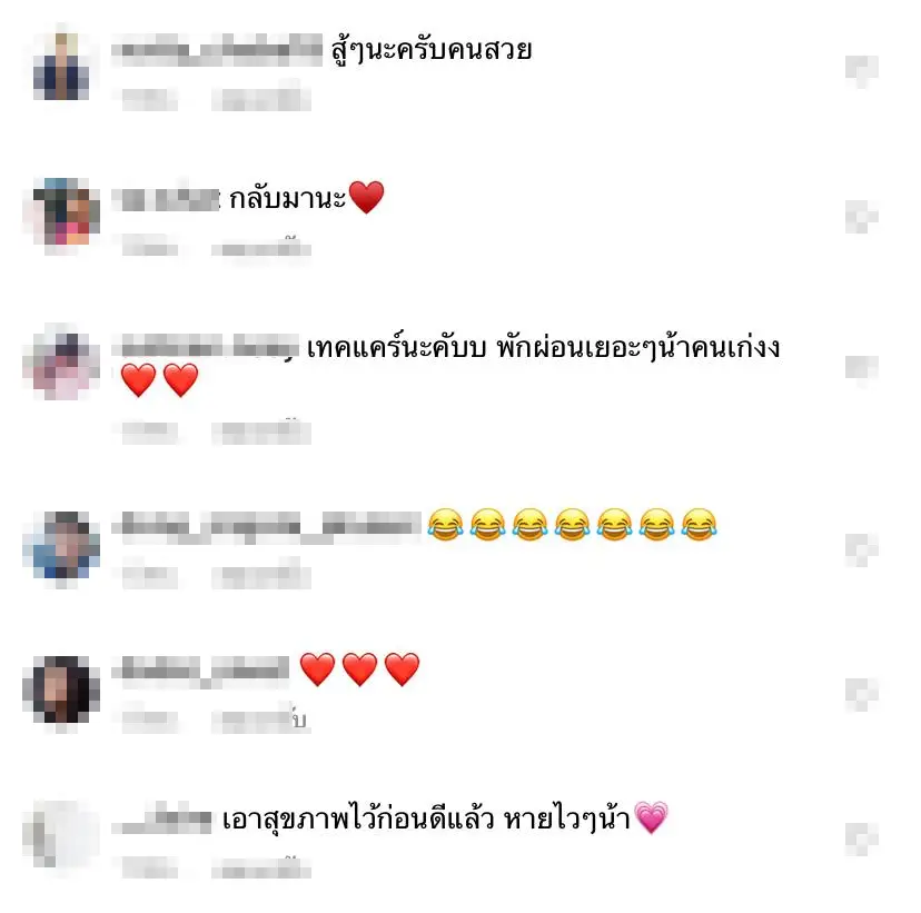 ทำให้แฟนคลับหลายๆคนต่างก็พากันเข้าไปให้กำลังใจสาวเอิร์นพร้อมทั้งบอกว่า ให้เจ้าตัวดูแลสุขภาพก่อน แล้วค่อยกลับมาประกวดใหม่ พร้อมทั้งจะยังติดตามเจ้าตัวต่อไป