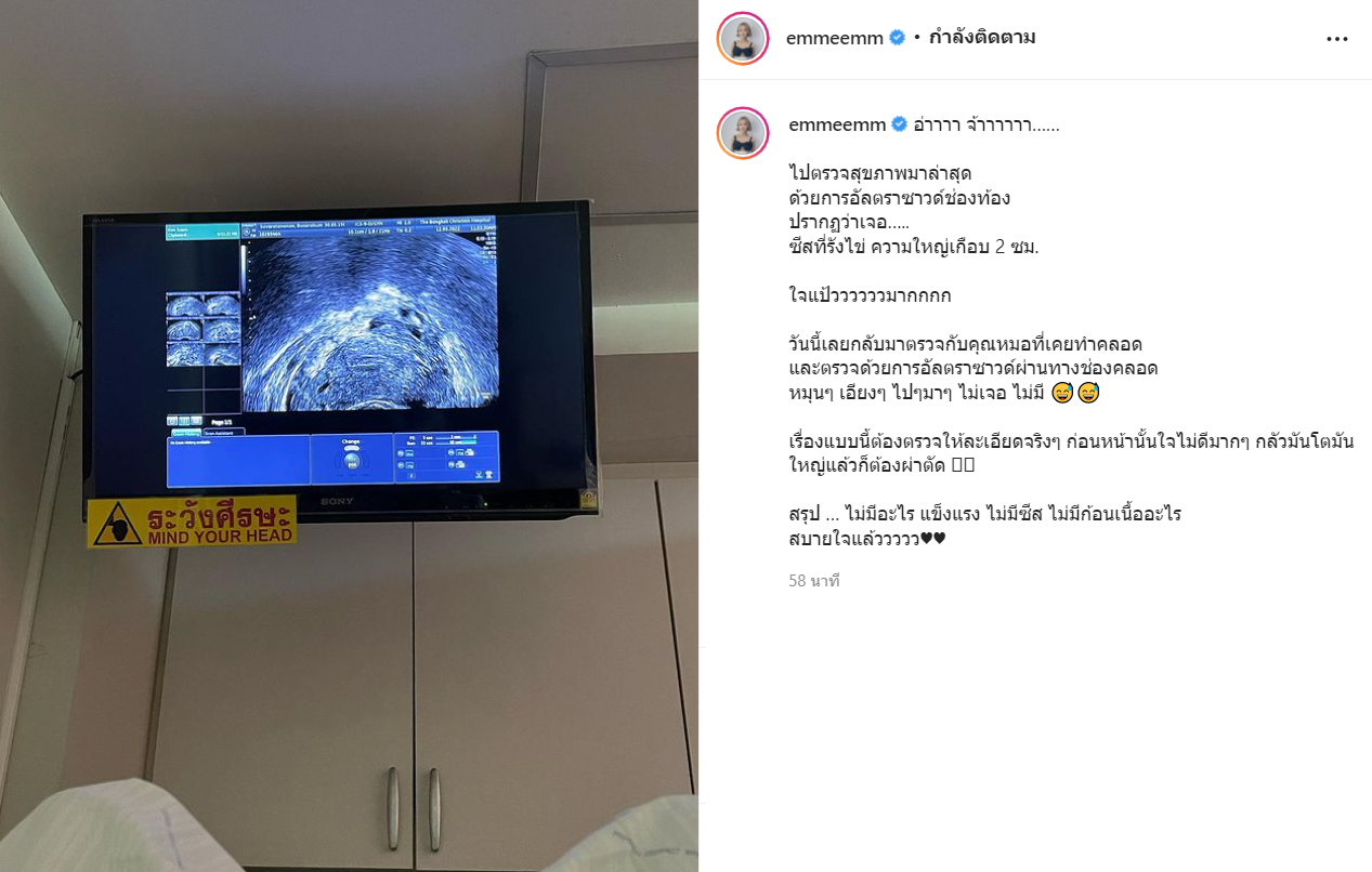 เอ็ม บุษราคัม อัปเดตสุขภาพล่าสุด ภายหลังตรวจเจอ ซีสที่รังไข่ ความใหญ่เกือบ 2 เซนติเมตร เจ้าตัวลั่น ตอนนั้นใจไม่ดีมาก ๆ กลัวมันใหญ่โตแล้วต้องผ่าตัด