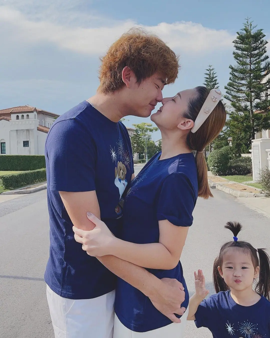 ล่าสุด เอ็ม ได้ลงภาพตัวเองกำลังเอาหน้าเข้าใกล้กับสามี โดยมีลูกๆ ยืนกระโดดอยู่ข้างๆ พร้อมเขียนแคปชันว่า