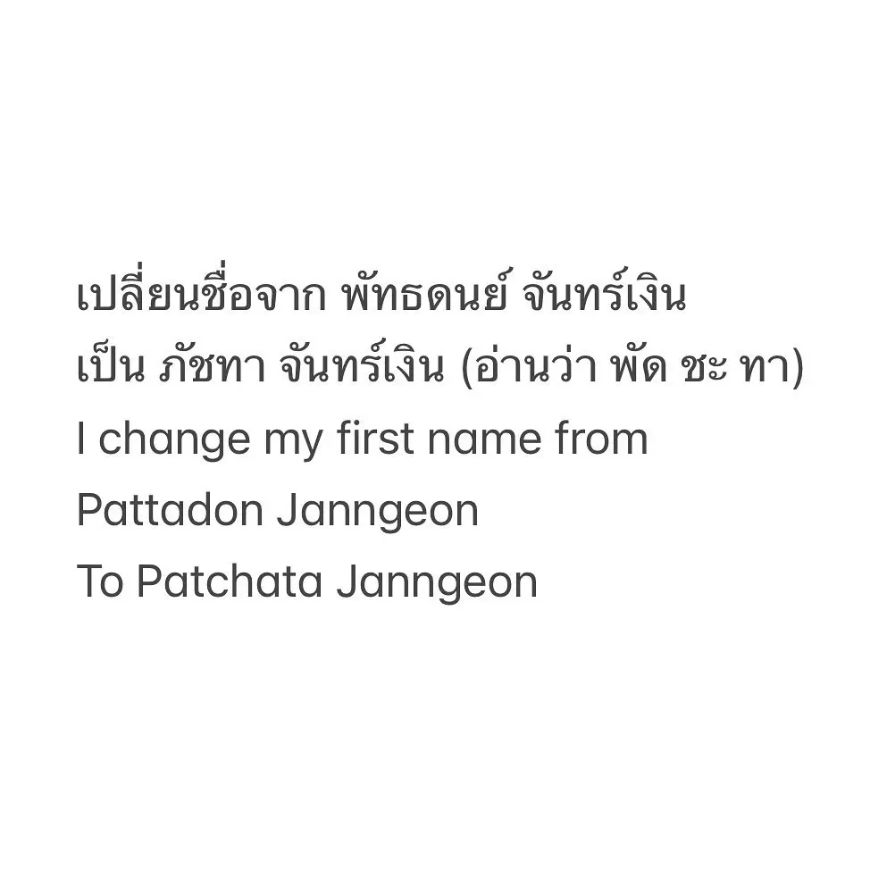เฟียต พัทธดนย์ ประกาศเปลี่ยนชื่อลงอินสตราแกรมส่วนตัว แฟน ๆ แห่อวยพรขอให้มีแต่งสิ่งดี ๆ เข้ามา บ้างก็ถามว่าเปลี่ยนเพราะอะไร