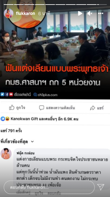 ล่าสุด ฟลุ๊ค กะล่อน ยูทูบเบอร์ชื่อดังอีกคนออกมาฟาดปมนี้สะนั้นหลังเจ้าตัวเทียบให้เห็นชัดๆ โดยมีการคอมเมนต์ใต้โพสต์สำนักข่าวดังว่า แต่งกายเรียนแบบพระ กระทบจิตใจประชาชนหลายล้านคน แต่ทุกวันนี้น้ำท่วม น้ำมันแพง สินค้าเกษตรราคาตกต่ำ เด็กจบไม่มีงานทำ คนตกงาน ไม่กระทบประชาชนหรอ งง เพ้อเจ้อ