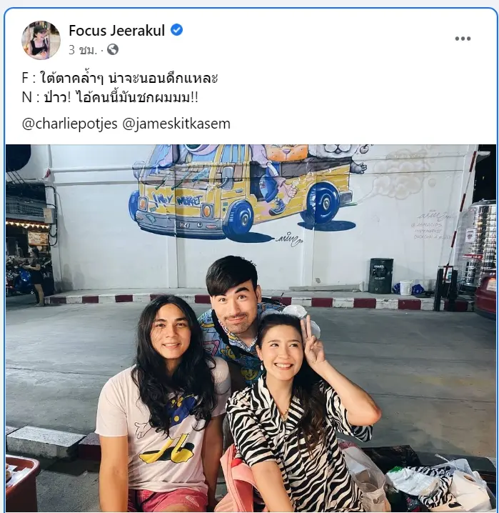 โดยล่าสุด โฟกัส ได้เผยภาพระหว่างเธอ เจมส์ และแน็ค พร้อมระบุแคปชั่นสุดน่ารักที่แซวกันเอง ว่า