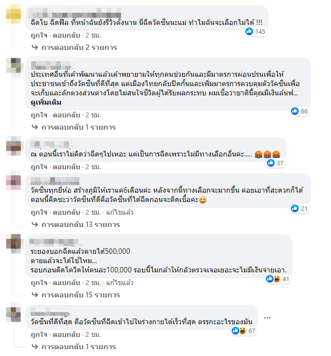 “ดูรายการนึงเมื่อคืน บอกว่าให้ ปปช รีบฉีดตัวที่มีก่อน ละปลายปีมีวัคซีนตัวที่ดีเข้ามา ก็ให้ ปปช เก็บเงินไปฉีดอีกที