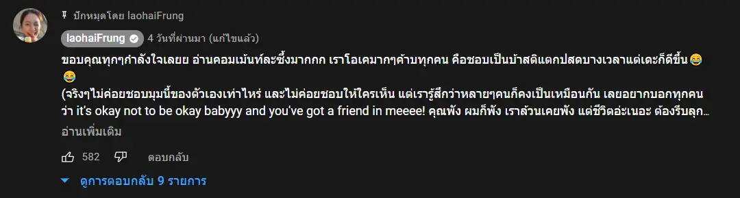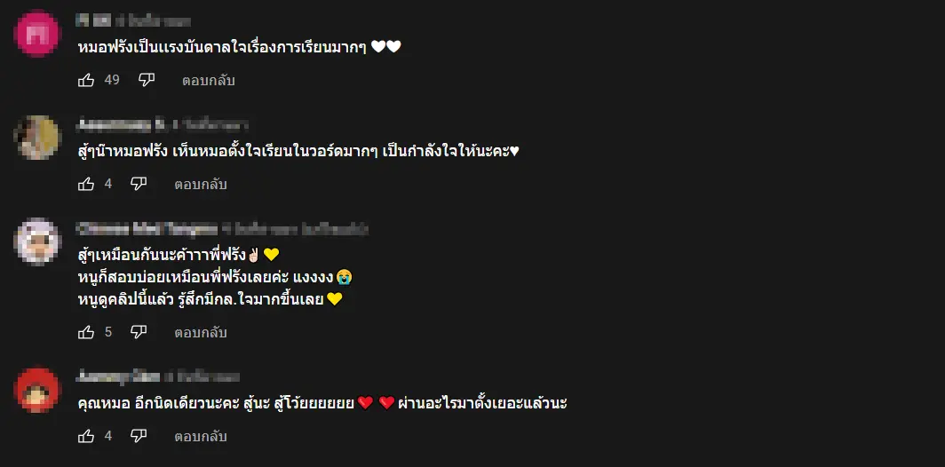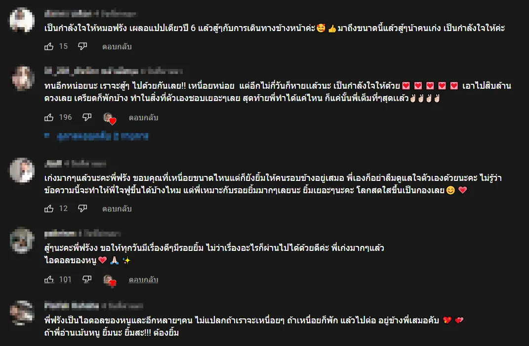 หลังจากที่คลิปดังกล่าวถูกอัปลงยูทูป คนที่ติดตาม ฟรัง อยู่ก็ได้เข้ามาให้กำลังเจ้าตัวกันอย่างล้นหลามใต้คลิปนี้ จนเจ้าเองก็ได้ออกมาขอบคุณทุกๆกำลังใจ ตอนนี้โอเคขึ้นมากๆแล้ว