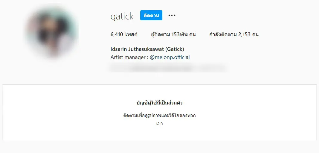 กระติก อิจศรินทร์ ตั้งค่าอินสตาแกรมเป็น Private หรือ เป็นส่วนตัวเรียบร้อย ทำให้ผู้ที่ไม่ได้กดติดตามหรือ Follow จะไม่สามารถเห็นความเคลื่อนไหวได้