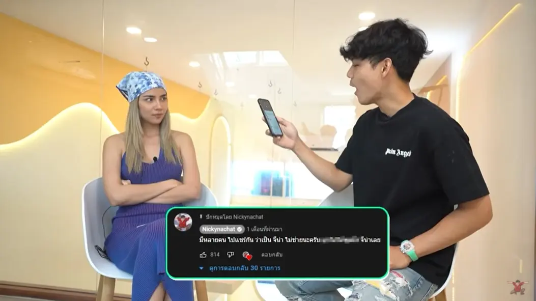 พยายามเข้าใจทุกๆอย่างมากๆ เปิดใจกว้างมาก แล้วก็มันมีหลายรอบแล้วกับรายการคุณ ก็เลยไม่ได้รู้สึกว่าอะไร แต่ว่าพอมันออกไปสักประมาณชั่วโมง 2 ชั่วโมง ทำไมสุดท้ายมันกลายเป็นเรา ก็พยายามเข้าใจนะ แต่สุดท้ายมันก็มีความที่แบบร้องไห้เลย บางทีเรารู้จักแล้วเราก็สนิทกันแบบมากๆ เราก็สนิทกัน หนูมีอะไรหนูก็ปรึกษาพี่ มันก็เลยมีความรู้สึกว่า บางทีคนเรา ยอดวิวกับการที่เราแคร์ใครสักคน มันก็ต้องมีความบาลานซ์กัน ไม่เสียใจแต่น้อยใจมาก น้อยใจแบบเ-ี้ยๆ จะไม่มาออกช่องรายการนิกกี้อีกแล้วเลย ไม่โกรธแต่น้อยใจ กูไม่อยากรู้จักแล้วตอนเนี้ย