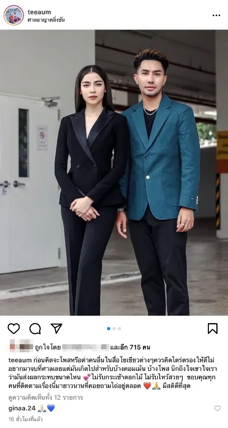 “ก่อนคิดจะโพสหรือด่าคนอื่นในสื่อโซเชียวต่างๆควรคิดไตร่ตรองให้ดีไม่อยากมาจบที่ศาลเลยแต่มันเกิดไปสำหรับบ้างคอมเม้น บ้างโพส นึกถึงใจเขาใจเราว่ามันส่งผลกระทบขนาดไหน 💕ไม่รับกระเช้าดอกไม้ ไม่รับไหว้สวยๆ ขอบคุณทุกคนที่ติดตามเรื่องนี้มายาวนานที่คอยถามไถ่อยู่ตลอด ❤️🙏 มีสติดีที่สุด