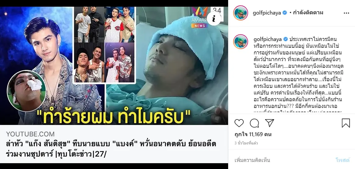 กอล์ฟ พิชญะ จากเหตุการณ์ น้องแบงค์ นักเต้นรองแชมป์โลก และนายแบบ โดนกลุ่มวัยรุ่นรุมกระทืบเพราะถามว่าว่าจากไหนกัน จนได้รับบาดเจ็บสาหัส กะโหลกร้าว