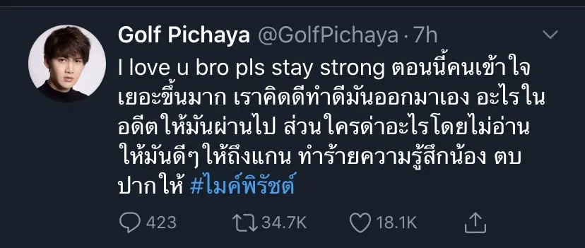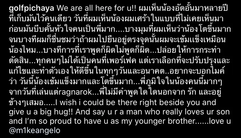 ทีมข่าวบันเทิง Bright Today จึงขอรวบรวมคำพูดของพี่ชายอย่างกอล์ฟมาฝากแฟนๆที่ติดตามเรื่องนี้กันว่าได้แสดงความคิดเห็นผ่านสื่ออย่างไรบ้าง ขอพูดบ้าง “กอล์ฟ พิชญะ” เคลื่อนไหวพูดถึง “ไมค์ พิรัชต์” หลังน้องชายเปิดใจทั้งน้ำตาเรื่องลูก