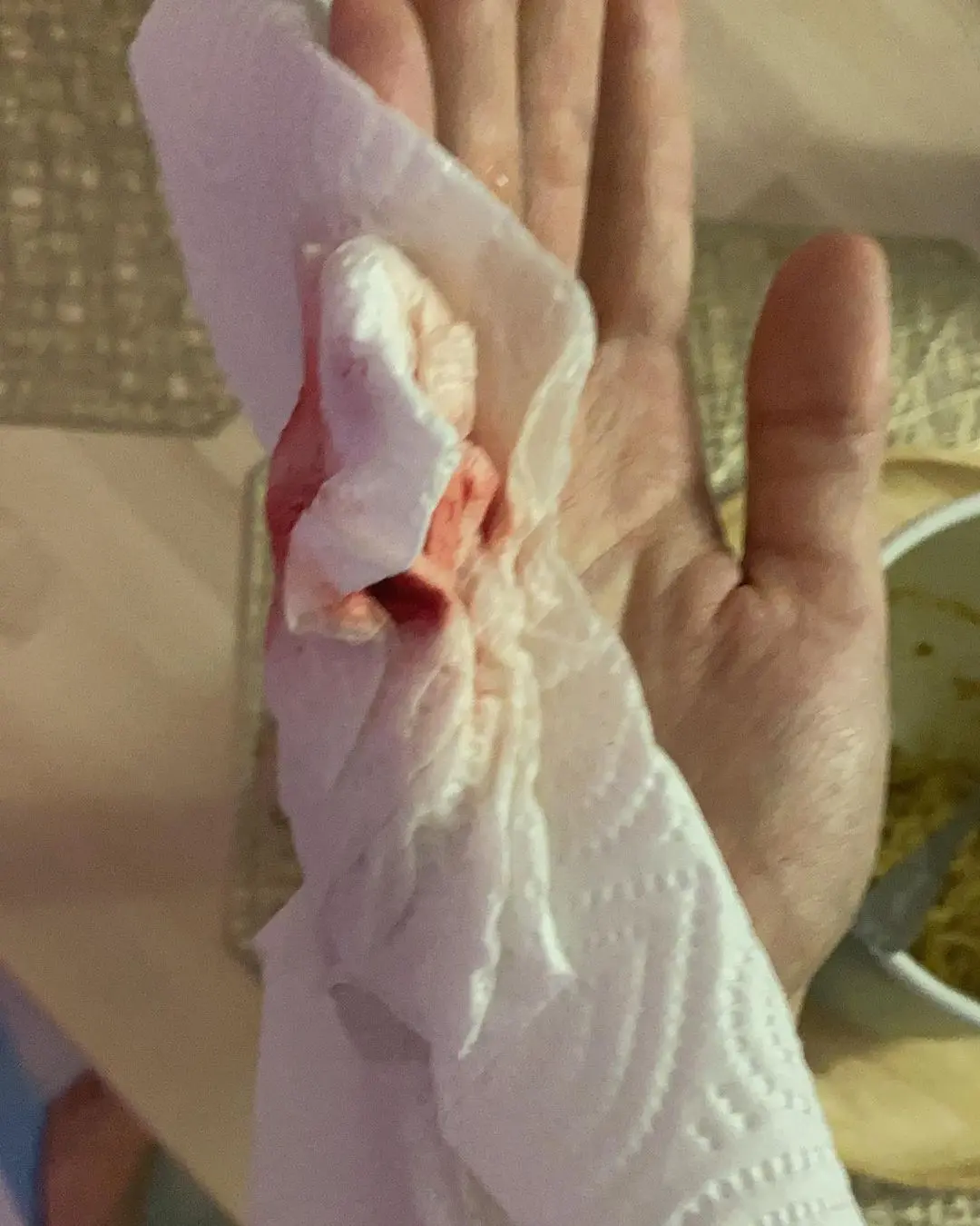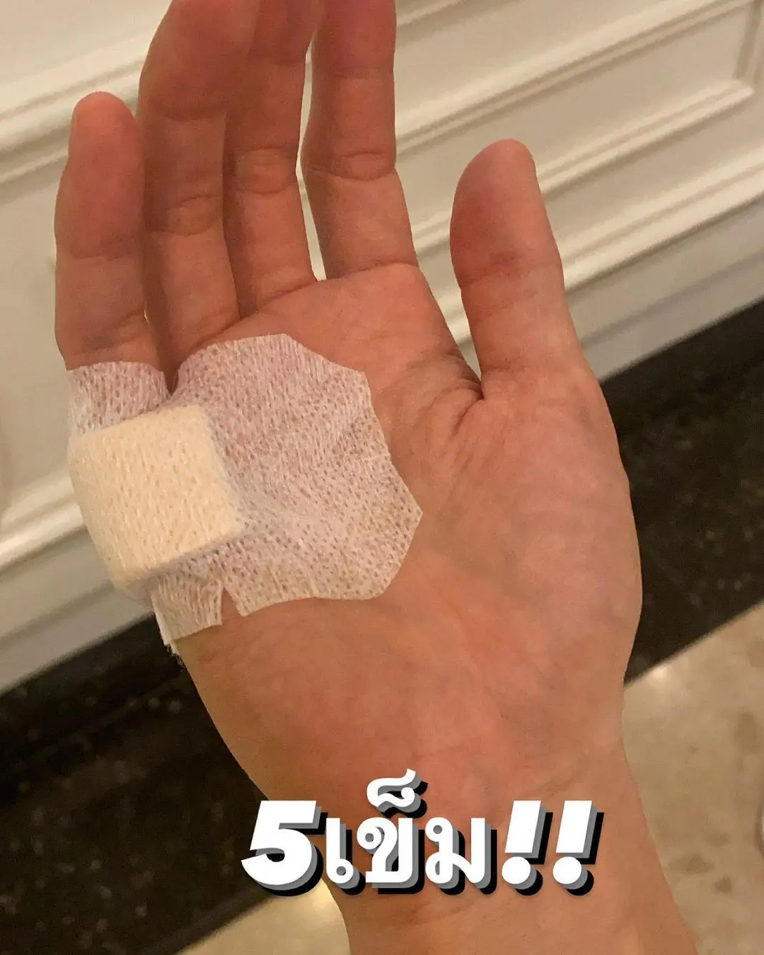 เจ้าตัวเล่าว่า เมื่อกลางดึกของเมื่อคืน เกิดนอนไม่หลับเลยกะว่าจะลงมาหาอะไรกิน เลยลงมากะจะลวกก๋วยเตี๋ยวกิน เเต่เพราะร่กไปหน่อย กลัวว่าไข่ที่ลวกไว้จะสุกเกิน เลยรีบไปหันคว้าชามมาจะใส่ไข่ เเต่ชามก็ดันมาหลุดมือ ด้วยความพยายามอยากคว้าเอาไว้ เเต่ก็คว้าไม่ทัน ชามเจ้ากรรมกับเเตกซะก่อนที่มือของหนุ่มกอล์ฟจะคว้าไว้ได้ ก็จัดไปเลยค่ะ 5 เข็ม! งานนี้เอ็ฟเฟ็คเลือด คิวบู้ อะไรไม่ต้องมาเลยค่ะ ของจริงทั้งนั้น
