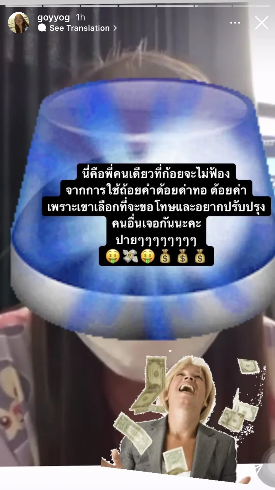 นี่คือพี่คนเดียวที่ก้อยจะไม่ฟ้องจากการใช้ถ้อยคำด้อยด่าทอ ด้อยค่า เพราะเขาเลือกที่จะขอโทษและปรับปรุง คนอื่นเจอกันนะคะ