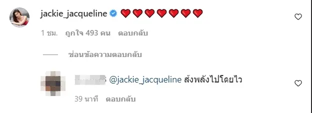 แจ็คกี้ ชาเคอลีน ผู้สมัครหมายเลข 375 ลูกสะใภ้แม่กุ้ง เข้าคอมเมนต์ให้กำลังใจ เกรท วรินทร หลังทราบผลการตรวจหาโควิด-19 เป็นบวก