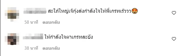 ส่วนในเรื่องของกำลังใจนั้น ก็มีเพื่อนๆในวงการเข้ามาให้กำลังกับเป็นจำนวนมากแล้ว หนึ่งในนั้นจะขาดไม่ได้เลย สำหรับ แจ็คกี้ ซึ่งในตอนนี้ก็กำลังอยู่ระหว่างกักตัวเช่นกัน ก็ได้เข้ามาร่วมคอมเมนต์ให้กำลังใจกับทางด้านของ เกรท ด้วยอีโมจิสีแดงจำนวนมาก จนมีคนมากดไลก์ข้อความหัวใจของแจ็คกี้เกือบ 500 คนเลยทีเดียว