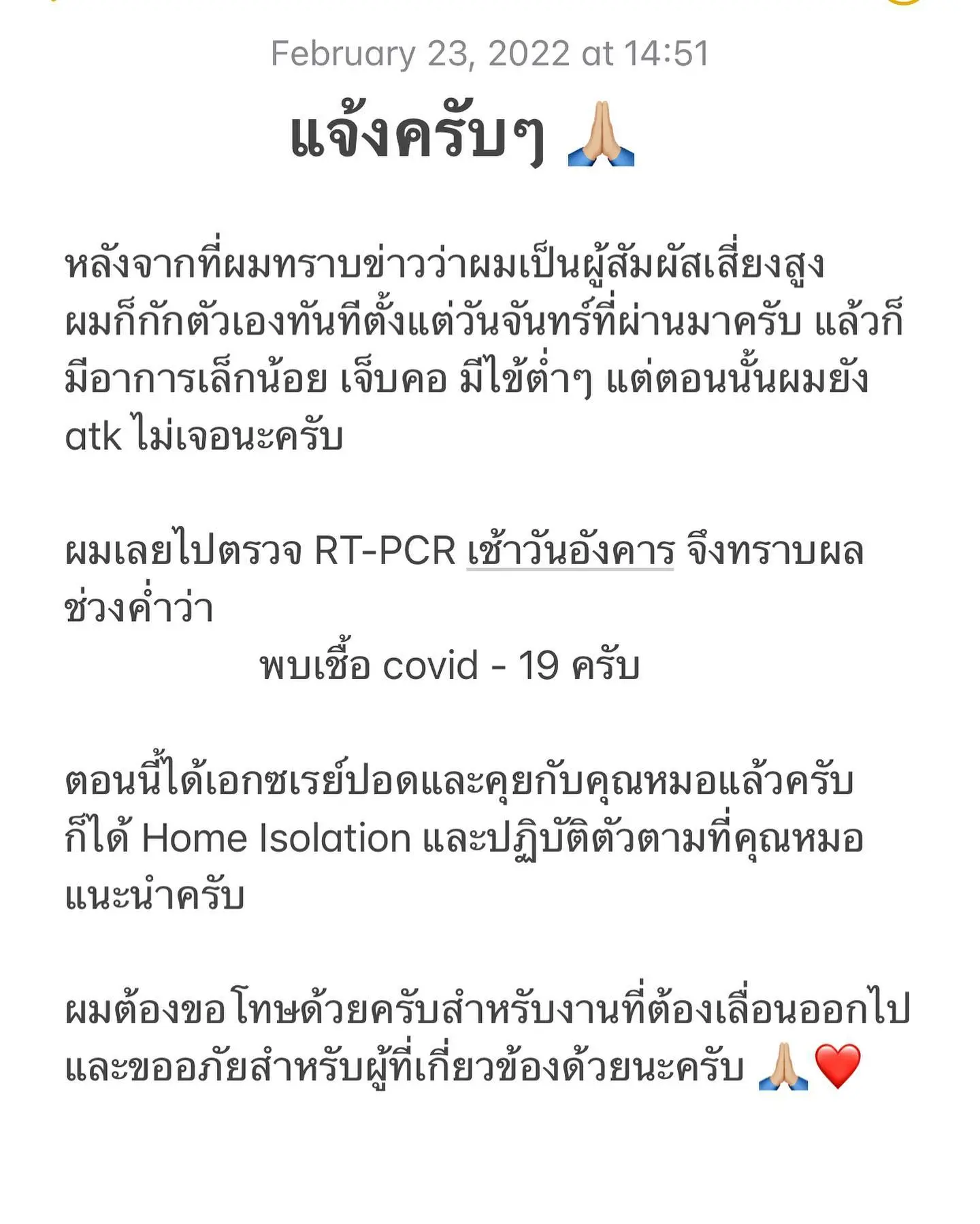 เกรท วรินทร ออกมาเปิดภาพหน้าสด หลังประกาศข่าวติดเชื้อโควิด-19 งานนี้ทำเอาแฟนคลับแห่เมนต์กันอย่างไว