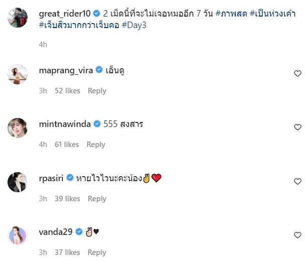 หลังจากนั้นไม่นานก็ทำเอาแฟนคลับ และคนบันเทิงต่างก็แห่เข้ามาให้กำลังใจ พร้อมคอมเมนต์แซวปนเอ็นดูกับพระเอกหนุ่มกันอย่างคึกคักเลยทีเดียว