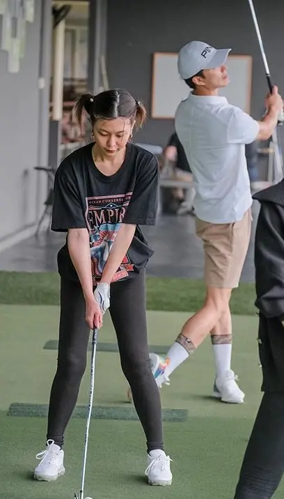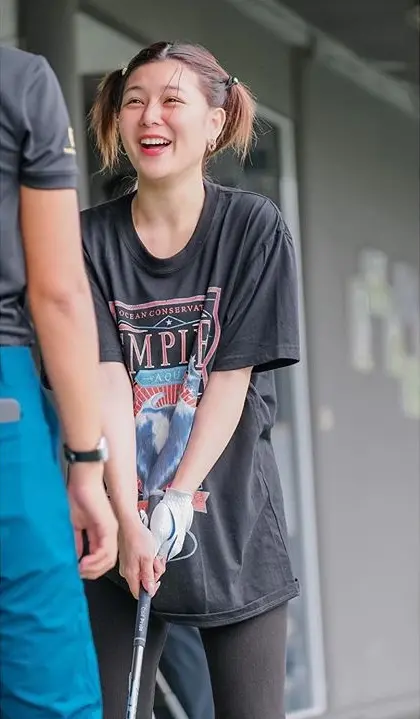 ต่อมา กุ๊บกิ๊บ ก็ได้มีการโพสต์ภาพอีกเซ็ต ที่เจ้าตัวลงมือตีกอล์ฟด้วยตัวเอง พร้อมเผยว่า “First time ? สามีลากมาเรียนกอล์ฟเป็นเพื่อนลูก @thegolf.connex #ความของฝันสามีคืออยากให้เราออกรอบด้วย“