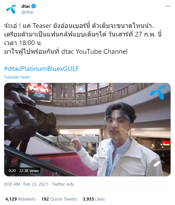 งานนี้แฟน ๆ ก็ได้หวีดกันในแฮชแท็ก #dtacPlatinumBluexGULF จนโผขึ้นเทรนด์ที่หนึ่งประเทศไทยกันเลยทีเดียว บอกเลยว่าพลาดไม่ได้เด็ดขาด วันที่ 27 ก.พ.นี้