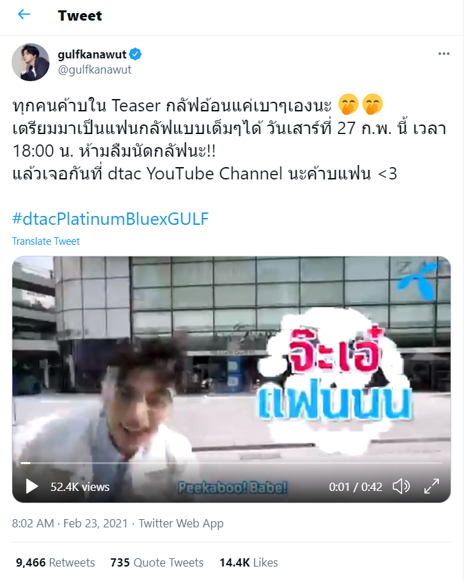 โดยกลัฟก็ได้มาทวิตอ้อนแฟน ๆ ว่า