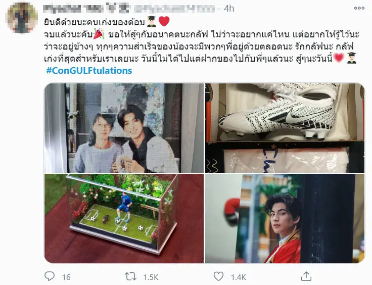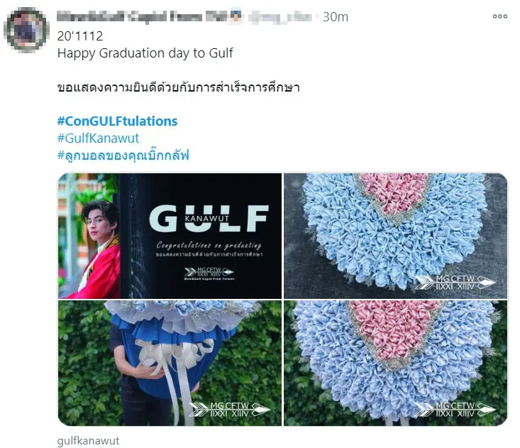 ต้องขอแสดงความยินดีกับหนุ่มฮอตปรอทแตก กลัฟ คณาวุฒิ แบบรัวๆ เลย ที่วันนี้ได้เข้าร่วมงานรับปริญญาของเจ้าตัวไปเป็นที่เรียบร้อยแล้ว งานนี้บอกเลยว่าแฟนๆ ของหนุ่มกลัฟเป็นปลื้มสุดๆ พากันดันแฮชแท็ก #ConGULFtulations เพื่อส่งความรักความยินดีให้กลัฟกันยกใหญ่ จนตอนนี้แฮชแท็กติดขึ้นเทรนด์อันดับ 1 ในทวิตเตอร์ประเทศไทยไปเรียบร้อยแล้ว อีกทั้งความรักจากเหล่าแฟนๆ ทั้งไทย และต่างประเทศ ก็หลั่งไหลกันเข้ามาแบบท้วมท้น จนต้องบอกเลยว่า งานนี้ของขวัญแสดงความยินดีกับบัณฑิตป้ายแดงล้นบ้านกันอย่างแน่นอน