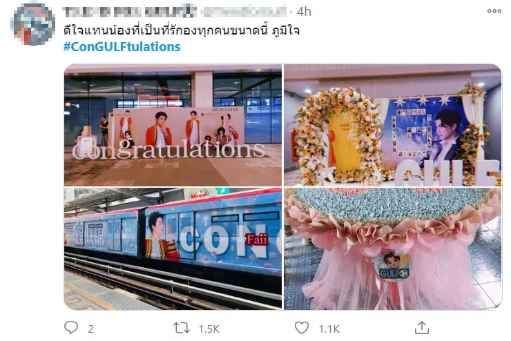 โดยเหล่าแฟนๆ ทั้งจัดซุ้มช่อดอกไม้ ซื้อช่อดอกไม้เงิน ซื้อเค้ก ซื้อตุ๊กตา มาให้หนุ่มกลัฟกันอย่างท้วมท้น จนเห็นแล้วอดจะเป็นปลื้มแทนไม่ได้ นอกจากนี้เหล่าแฟนๆ ยังทุ่มทุน ซื้อป้ายโฆษณาติดบนขบวนบีทีเอสกันอีกด้วย บอกเลยว่ากระจายความหล่อ ความน่ารักกันแบบทั่วถึงทุกพื้นที่จริงๆ