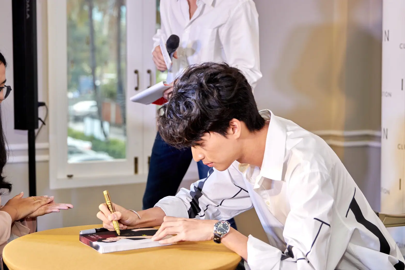 จากนั้นก็เรียกเสียงกรี๊ดได้สนั่น กับการปรากฏตัวของนักแสดงหนุ่มหล่อสุดฮอต “กลัฟ คณาวุฒิ ไตรพิพัฒนพงษ์” ที่ได้มาร่วมกิจกรรมสุดเอ็กคลูซีฟนี้ และได้มาบอกเล่าถึงเคล็ดลับการดูแลผิวให้กระจ่างใส ผิวสุขภาพดีอยู่ตลอดเวลา พร้อมตอบคำถามลับๆ ที่แฟนคลับอยากรู้