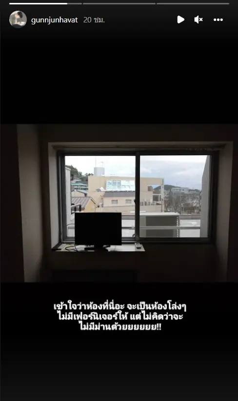ช็อกที่ 1 ห้องพักที่เจ้าตัวได้ ถึงจะเตรียมใจมาแล้วว่าจะได้ห้องเปล่า ๆ แต่ที่ทำเอาอึ้งก็คือไม่คิดว่าจะไม่มีผ้าม่านที่หน้าต่างให้มาด้วย เห็นเป็นวิวของบ้านพักอาคารบริเวณใกล้เคียงอย่างชัดเจน
