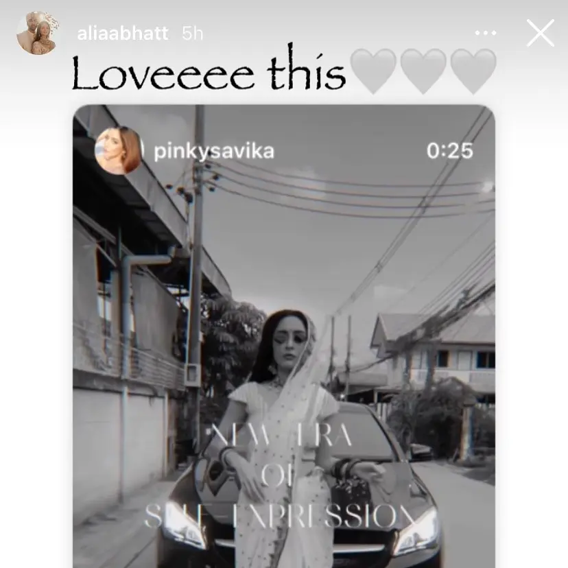 อเลีย บาตต์ นักแสดงชื่อดังจากภาพยนตร์ ‘คังคุไบ หญิงแกร่งแห่งมุมไบ’ รีโพสต์ของ พิงกี้ สาวิกา และ คุณยายหงส์ทอง ขึ้นสตอรี่ไอจีของตัวเอง หลังอินจัด แต่งลุค ‘คังคุไบ’ สนั่นโซเชียล!