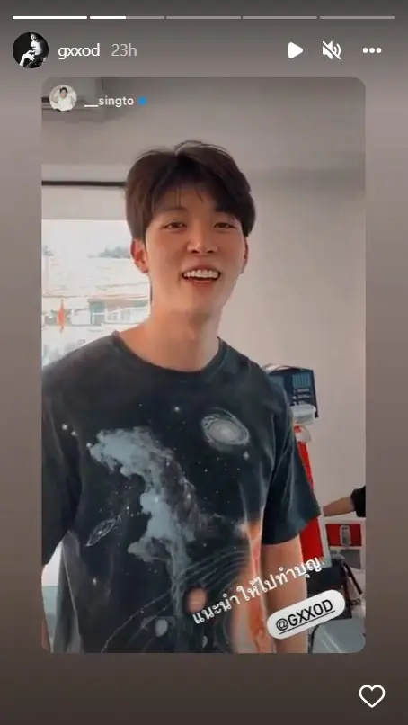 ขณะเดียวกันด้านนักแสดงหนุ่มอย่าง สิงโต ปราชญา ก็ได้ออกมาลงสตอรี่พร้อมแท็กหนุ่มก็อต โดยใส่แคปชั่นสุดเอ็นดู และเป็นห่วงมาอย่างทันทีว่า “แนะนำให้ไปทำบุญ”