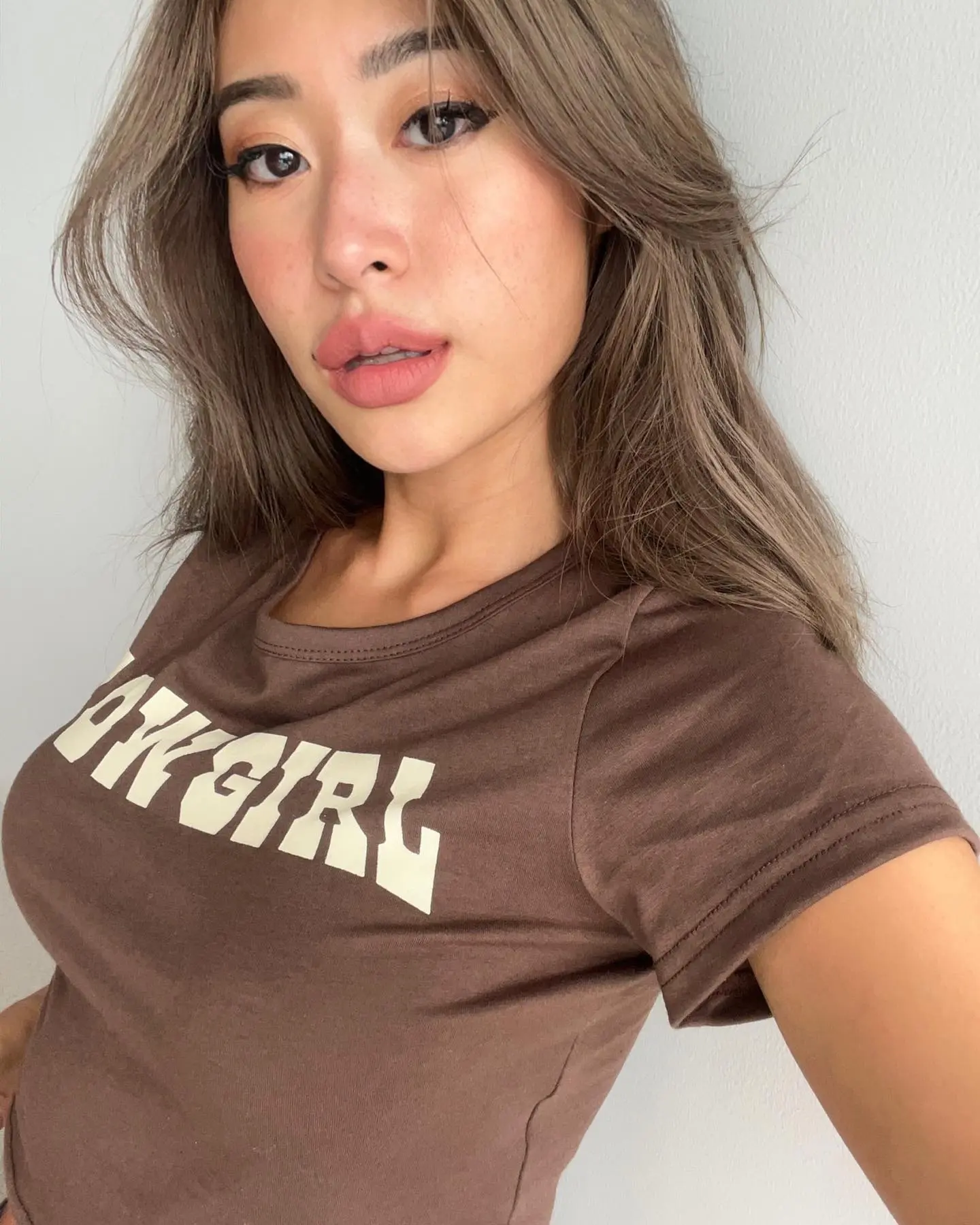 ซึ่งลุคนี้เจ้าตัวใส่เพียงแค่เสื้อเอวลอยตัวจิ๋วสีน้ำตาล กับกางเกงยีนส์ พร้อมรองเท้าสนีกเกอร์สีขาว ซึ่งเป็นลุคสุดชิลล์แต่แต่งออกมาแล้วดูแพงสุด ๆ ไปเลย