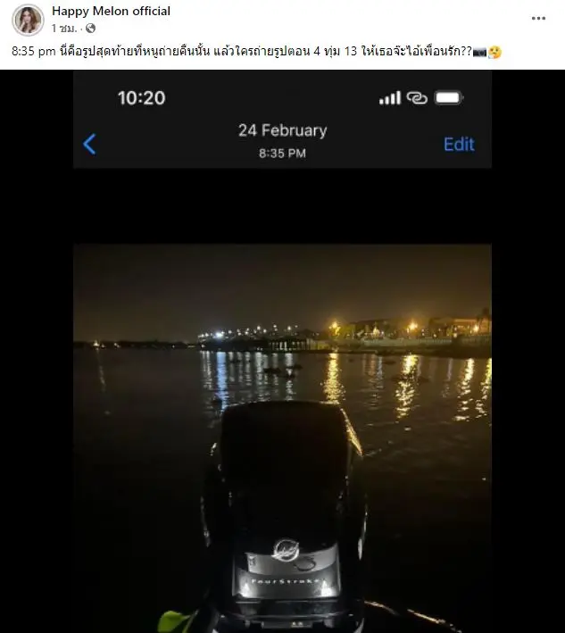 ตามติดแอคเคาท์ปริศนา แตงโม นิดา ล่าสุด เฟซบุ๊ก Happy Melon Patcharaveerapong ได้มีการเคลื่อนไหวด้วยการโพสต์ภาพเรือ พร้อมทิ้งข้อความชวนสงสัย