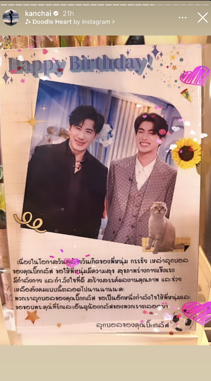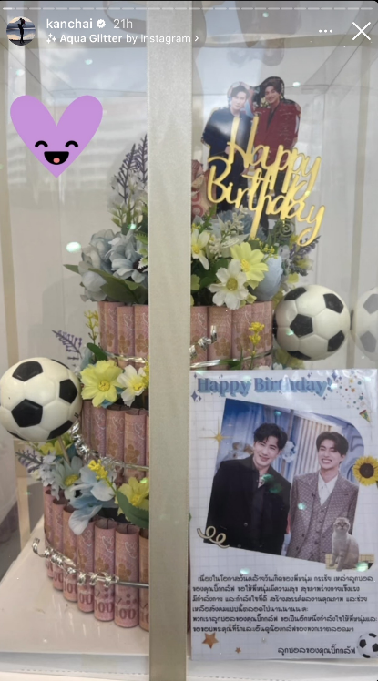 ขณะเดียวกันด้านบ้านแฟนคลับของลูกชายสุดรักของ หนุ่ม กรรชัย อย่าง กลัฟ คณาวุฒิ ก็ได้ส่งของขวัญพร้อมป้ายคำอวยพรมาแบบเต็มจัดส่งถึงมือเลยทีเดียว โดยของขวัญสุดพิเศษนั้นก็คือธนบัตรจำนวนหลายสิบใบที่ประดับมาในรูปทรงเค้กวันเกิด