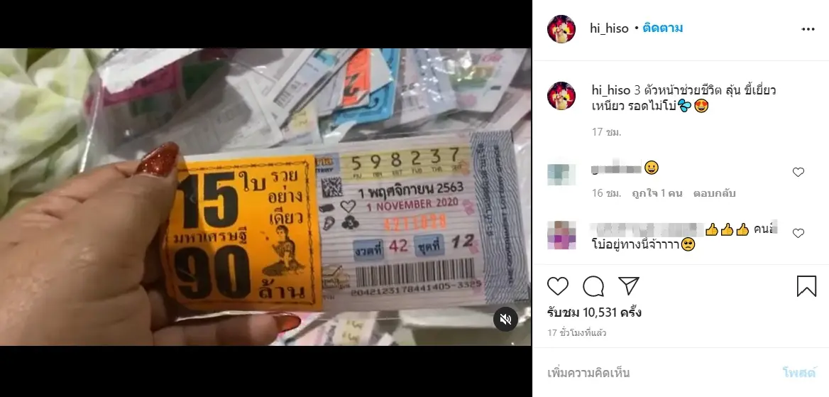 ล่าสุด ฮาย อาภาพร ซื้อลอตเตอรี่เลขเด็ด บอกเลยงานนี้ถูกเต็มๆ 3 ตัวหน้า !! แถมโชว์ลอตเตอรี่อีกเป็นกำลังมาก เรียกได้ว่า กองหวยกองใหญ่มากกกกก โดยเจ้าตัวได้ออกมาเผยภาพผ่านอินสตาแกรมส่วนตัวพร้อมเเคปชั่นว่า “3 ตัวหน้าช่วยชีวิต ลุ้น ขี้เยี่ยวเหนียว รอดไม่โบ๋??”