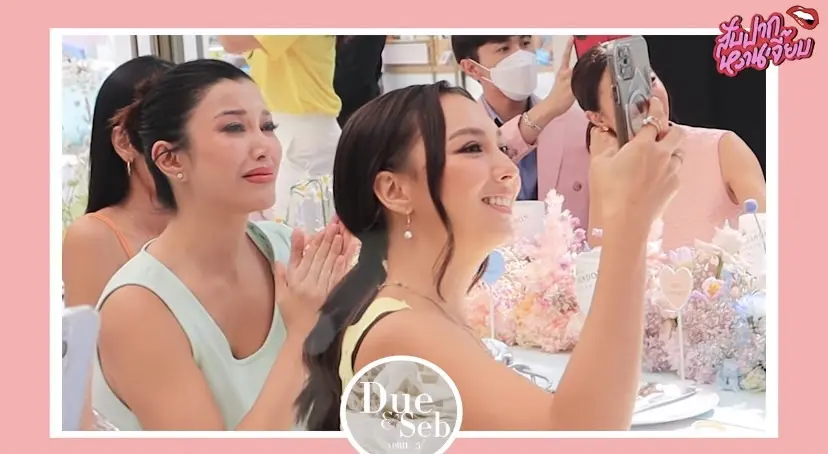 ล่าสุด หวานเจี๊ยบ ธนรัตน์ ผู้จัดการส่วนตัวของ ดิว อริสรา ก็ได้มีการโพสต์คลิปบรรยากาศในงานผ่านทางยูทูปชาแนล สับปากหวานเจี๊ยบ ซึ่งภายในงานก็ได้มีการเซอร์ไพรส์เรื่องการตั้งครรภ์ผ่านวิดีโอ ซึ่งหลังจากที่เพื่อนๆคนสนิทดูคลิปจบ แต่งก็ร้องไห้ปล่อยโฮไปตามๆกัน อีกทั้งยังมีการปรบมือแสดงความยินดีกันอีกด้วย