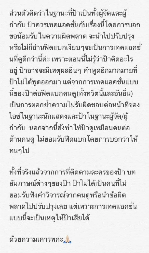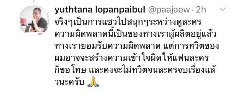 ไอซ์ ปรีชญา สวยขึ้นทันตาเห็น ฟาดลุค หวาน รับบทนางเอก ซึ่งป้าแจ๋วก็ได้ออกมาชี้แจงต่อเรื่องนี้แล้วเรียบร้อย และขอยุติการทวิตจนกว่าละครจะจบ ด้วยข้อความว่า