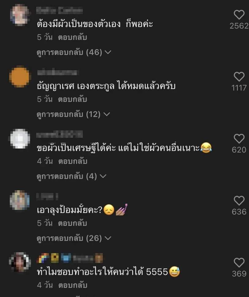 “เศรษฐกิจแบบนี้ โควิดแบบนี้ ไม่ขออะไรมาก ขอให้ได้ผัวเป็นเศรษฐี มีเงินในบัญชี 4 พันล้าน รักกู หลงกู ซื้อบ้าน ซื้อรถให้กู ขอแค่นี้พอ ขอมากกว่านี้เกรงใจ” ซึ่งหากย้อนไปที่ก่อนหน้านี้ เธอเคยตกเป็นประเด็นมือที่ 3 เจ้าของฉายาเมียหลวงลวงสังหาร จนทำให้ชาวเน็ตหลายๆคนต่างรุมแซะเธอกันอย่างมากมาย