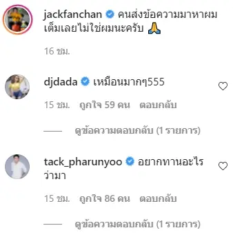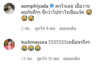 งานนี้ทำเอาเพื่อนนักร้องนักแสดงในวงการบันเทิงมากมาย ไม่ว่าจะเป็น ตุ๊กกี้ สุดารัตน์ , ซัน ประชากร , ดีเจเอกกี้ เอกชัย และ ตั๊ก มยุรา ต่างแห่เข้ามาคอมเมนต์กันเป็นเสียงเดียวกันว่า เหมือนมาก