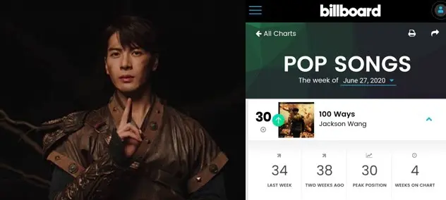 ความปังยังไม่หมดเพียงเท่านี้ แจ็คสัน หวัง ยังคงแรงต่อเนื่องสำหรับซิงเกิลเดี่ยว “100 Ways” ของหนุ่ม Jackson Wang ที่ขึ้นไปอยู่อันดับ 30 บนชาร์ต Billboard Pop Songs โดยที่ก่อนหน้านี้ก็ได้สร้างสถิติในประวัติศาสตร์ที่เป็นศิลปินเดี่ยวเชื้อสายจีนคนแรกที่ได้เข้าไปอยู่บนชาร์ต Top 40 ของ Mediabase ด้วย