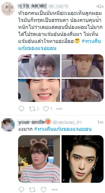 แจฮยอน NCT สำหรับการคัมแบ็กของ NCT ที่เพิ่งผ่านไปนั้น ต้องบอกเลยว่าความหล่อมาแบบจัดหนัก ไม่แผ่วเลยแม้แต่ซักคนเดียว แต่ก็ดูเหมือนว่า จะมีเมมเบอร์ที่ทำให้แฟนๆ ตกใจกันไปให้กับการเปลี่ยนแปลงที่ทำเอาเหล่าหัวใจซีจือนี่เจ็บจี๊ดๆ คนนั้นก็คือ แจฮยอน ที่กลับมาคราวนี้ ดูเหมือนว่าน้ำหนักของเจ้าตัวจะลดลงไปอย่างเห็นได้ชัด จนทำให้แฟนๆ ต่างบ่นคิดถึงแก้มฟูๆ ของเจ้าตัวเมื่อก่อน จนสร้างแฮชแท็กทวงคืนแก้มน้องแจฮยอน #ทวงคืนแก้มของแจฮยอน พร้อมดันกันจนแฮชแท็กขึ้นติดเทรนด์อันดับ 1 ทวิตเตอร์ประเทศไทยไปแล้ว