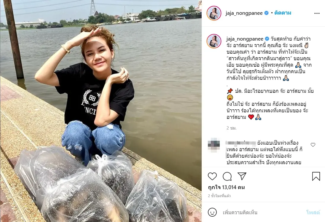 “วันสุดท้าย กับคำว่า จ๊ะ อาร์สยาม จากนี้ คุณคือ จ๊ะ นงผณี ✌? ขอบคุณคำ ว่า อาร์สยาม ที่ทำให้จ๊ะเป็น “สาวคันหูที่เกิดจากดินมาสู่ดาว” ขอบคุณเฮีย ขอบคุณซ้อ ผู้มีพระคุณที่สุด ?? จากวันนี้ไป ลุยธุรกิจเต็มตัว ฝากทุกคนเป็นกำลังใจให้จ๊ะด้วยน๊าาาาาา ??