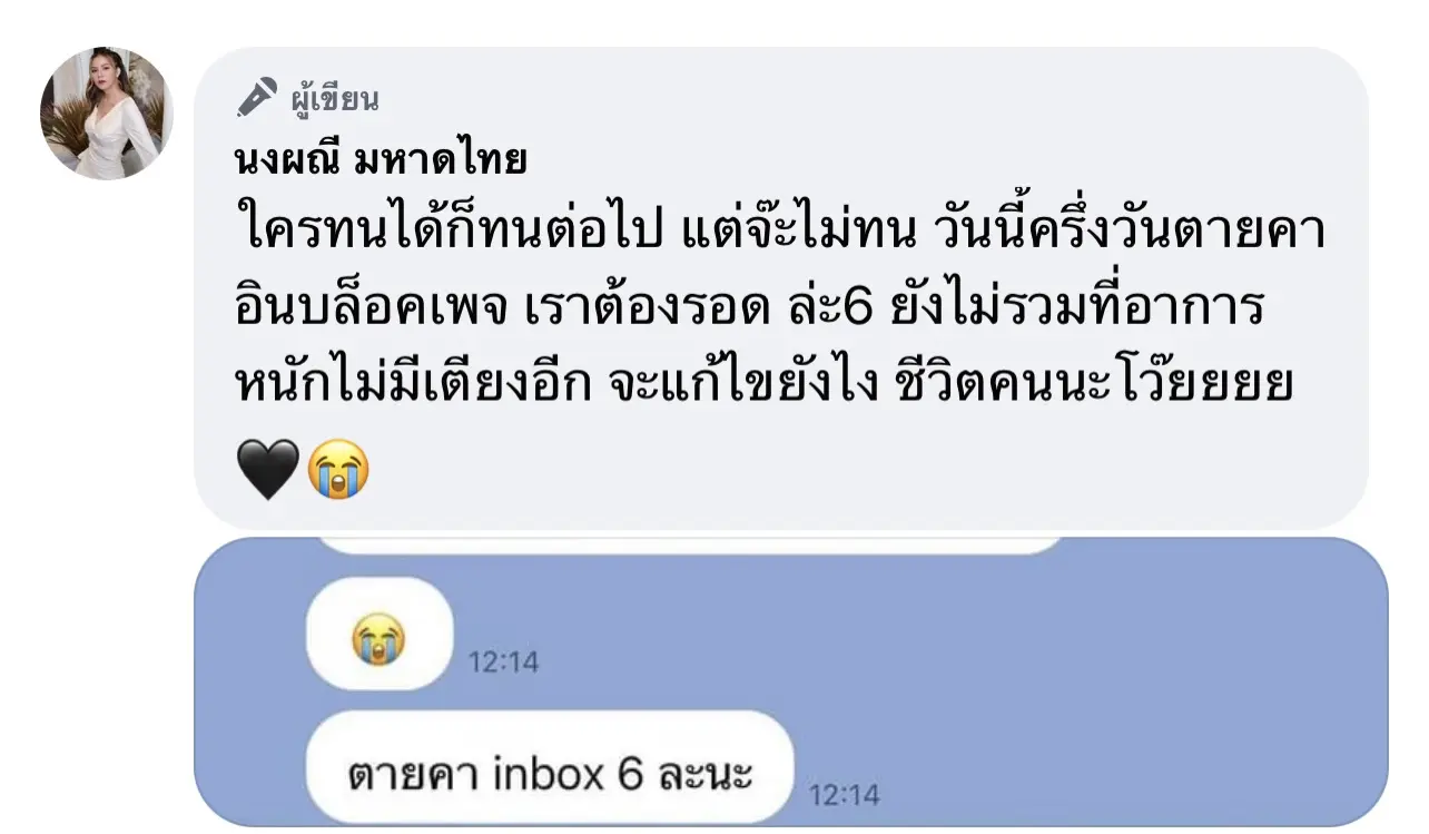นอกจากนี้เจ้าตัวยังได้คอมเมนต์ใต้โพสต์ดังกล่าวอีกด้วย โดยบอกว่า ใครทนได้ก็ทนต่อไป แต่จ๊ะไม่ทน วันนี้ครึ่งวันตายตาอินบ็อกซ์เพจ เราต้องรอด ละ6 ยังไม่รวมที่อาการหนักไม่มีเตียงอีก จะแก้ไขยังไง ชีวิตคนนะโว๊ย