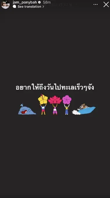 ขณะเดียวกัน ล่าสุดวันนี้ 4 พ.ค. แจม ชรัฐฐา ก็ได้ออกมาเคลื่อนไหว Instagram ส่วนตัวของเธออีกครั้งหลังได้ประกาศสถานะโสดแบบเต็มตัว พร้อมกับเขียนข้อความผ่านไอจีสตอรี่ว่า อยากให้ถึงวันไปทะเลเร็วๆจัง