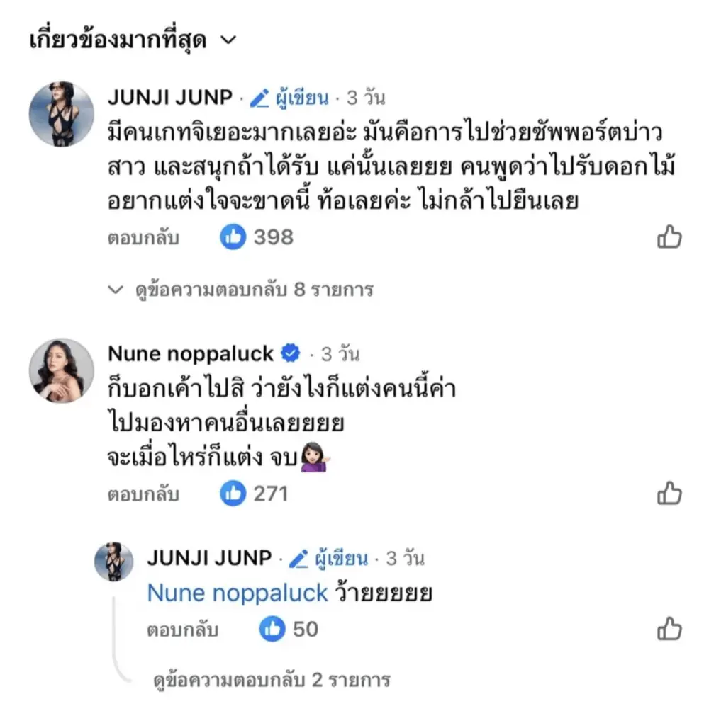 “มีคนเก็ทจิเยอะมากเลยอ่ะ มันคือการไปช่วยซัพพอร์ตบ่าวสาว และสนุกถ้าได้รับ แค่นั้นเลย คนพูดว่าไปรับดอกไม้อยากแต่งใจจะขาดนี้ ท้อเลยค่ะ ไม่กล้าไปยืนเลย”