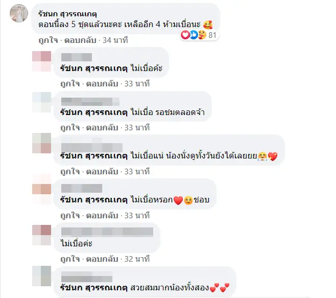 ซึ่งทางเจนนี่เองก็ได้ออกมาบอกว่า ยังเหลืออีก 4 เซตด้วยกัน ที่รอเตรียมปล่อยออกมาให้แฟนๆได้ดูกัน แถมยังบอกอีกว่า อย่าเพิ่งเบื่อภาพพรีเวดดิ้งของเจ้าตัวอีกด้วย