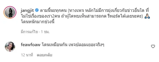 โดยบอกว่าเพจหลังจริงๆไม่ได้มีการลงข่าวเกี่ยวกับข่าวอื่นเลยที่ไม่ใช่อ่านของตัวเองและสามี งานนี้ได้ทางด้านของ อิม เฟี้ยว์ฟ้าว สุดสวิงริงโก้ เข้ามาคอมเมนต์เสริมอีกว่า ตัวเองก็โดนเหมือนกัน ช่วงนี้เพจปลอมระบาดหนักมาก